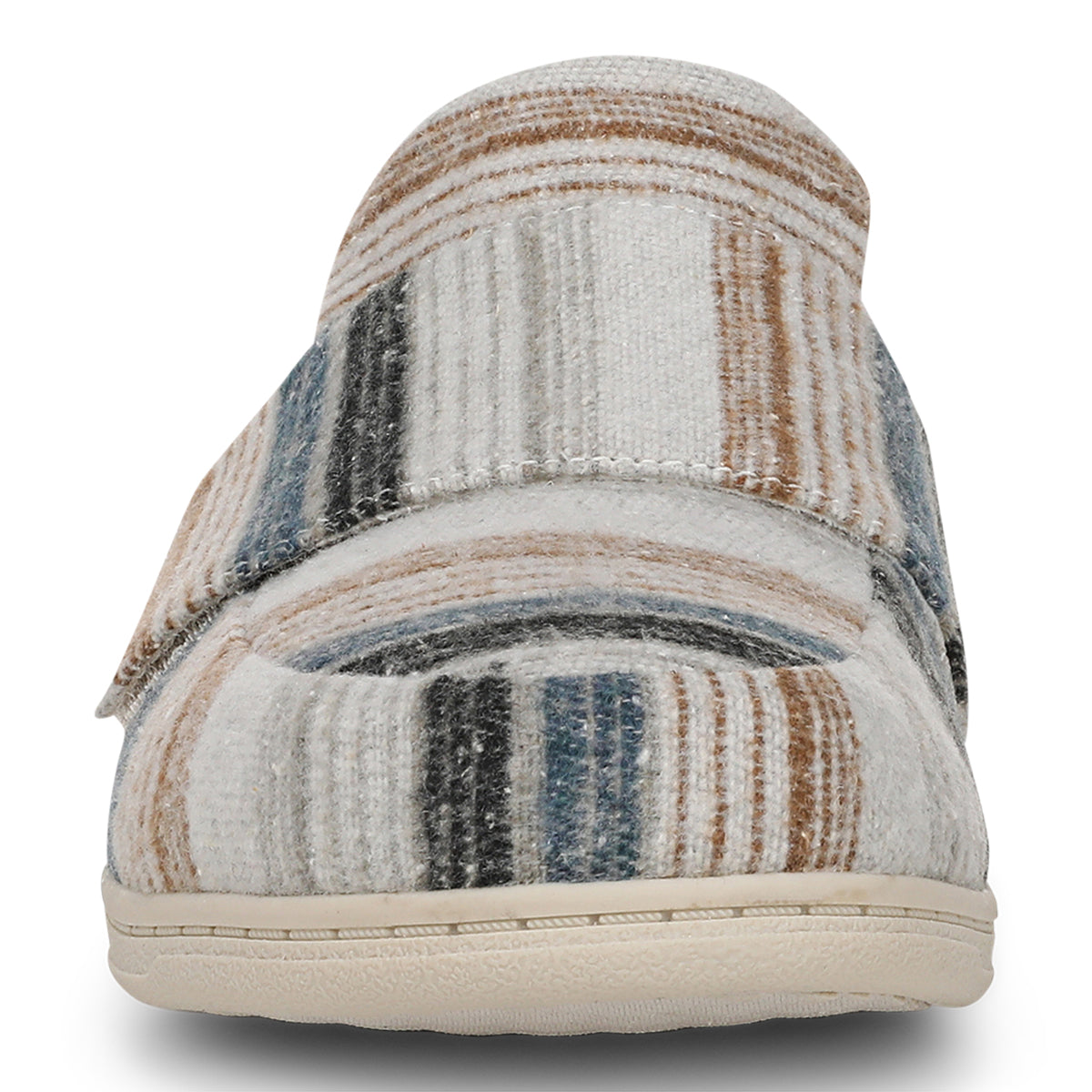 Revamp your comfort game with our updated Gemma slipper. Luxe materials, soft goring, and adjustable closure ensure the perfect fit. Padded footbed for unmatched comfort, redefined.
