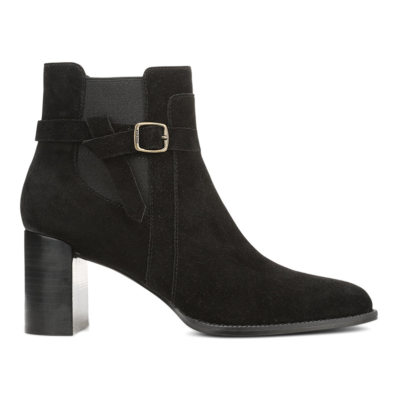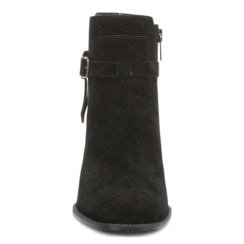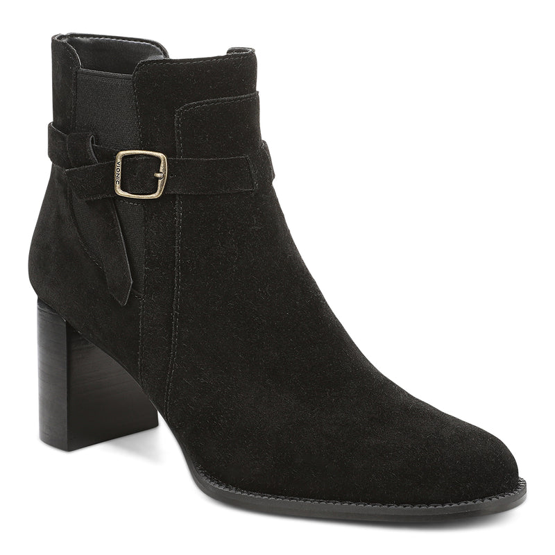 A refined boot with clean lines and a modern edge, it features smooth leather, a stacked heel for subtle lift, and a side zip for easy wear. Finished with a sleek almond toe and minimal stitching for a polished look.