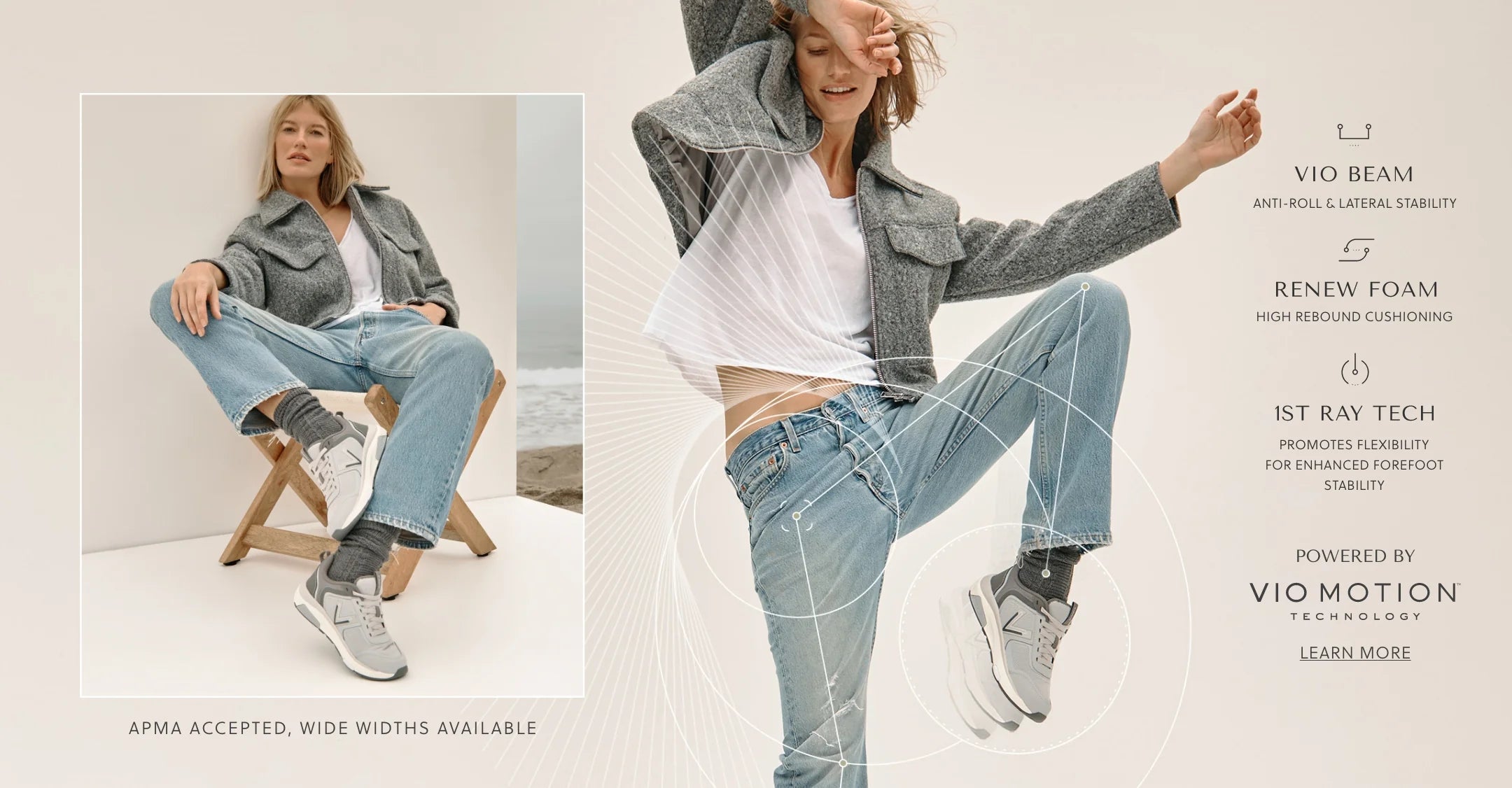“VIO MOTION™ TECHNOLOGY PROVIDES STABILITY WHERE YOU NEED IT WITHOUT SACRIFICING MOTION WHICH KEEPS YOUR FEET MOBING THE WAY THEY WERE DESIGNED TO MOVE COMFORTABLY.”
