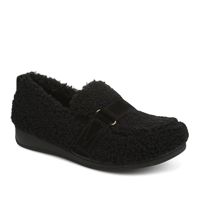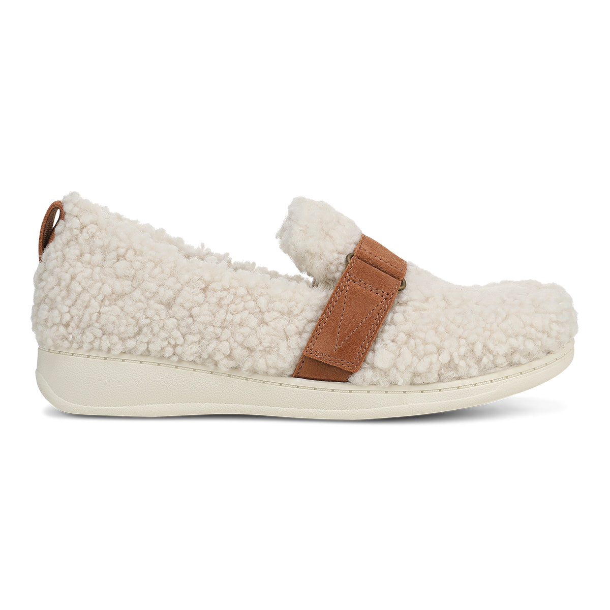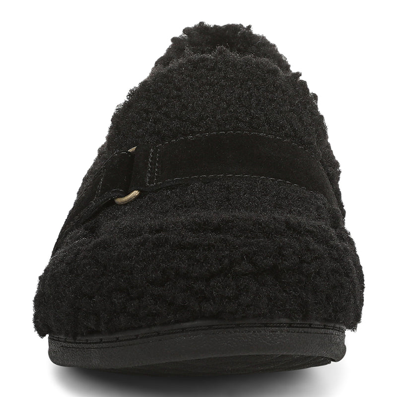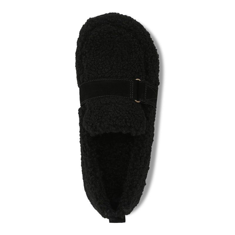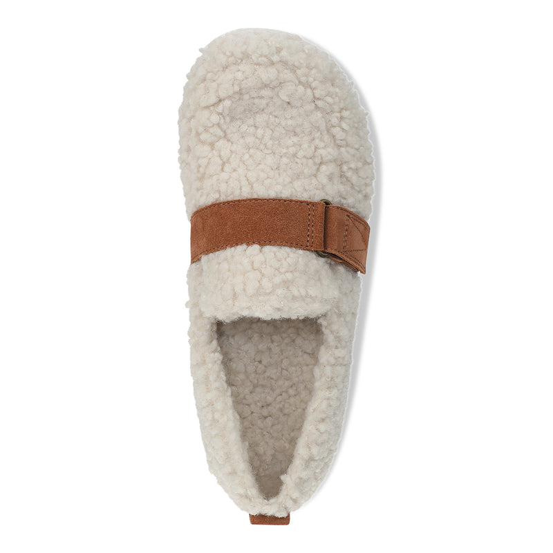 Slip into the warmth of the Imogen closed-back slipper, crafted with soft faux shearling and a smooth microfiber lining. Designed for effortless comfort, it features a hook-and-loop strap with D-ring detail, a lightweight EVA midsole, and a grippy TPR outsole—plus a convenient pull tab for easy wear.
