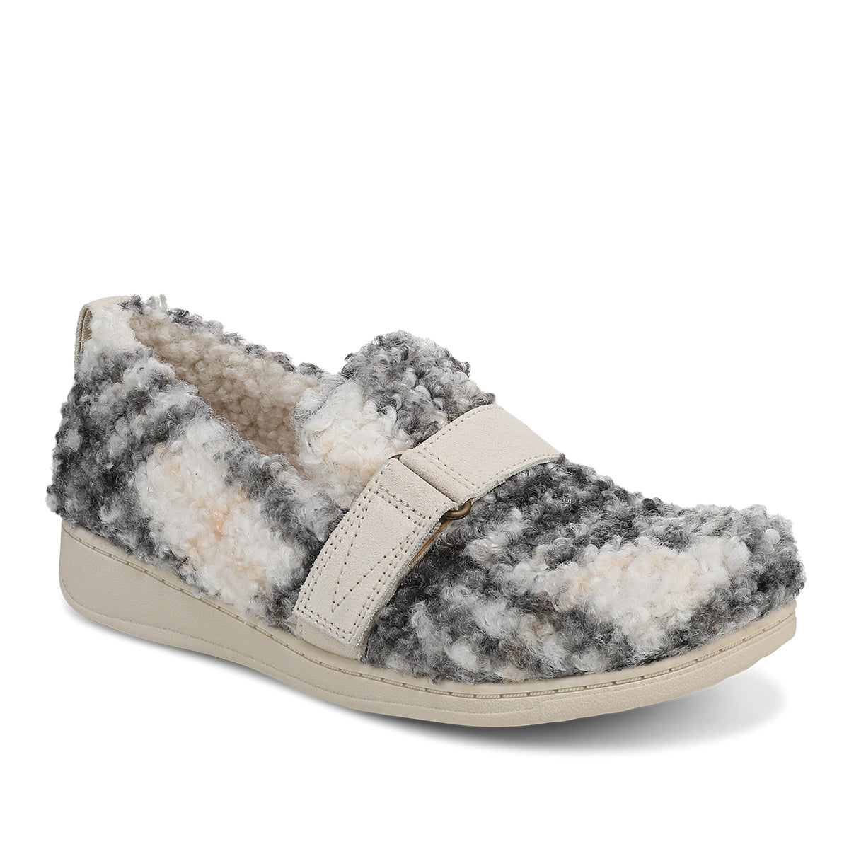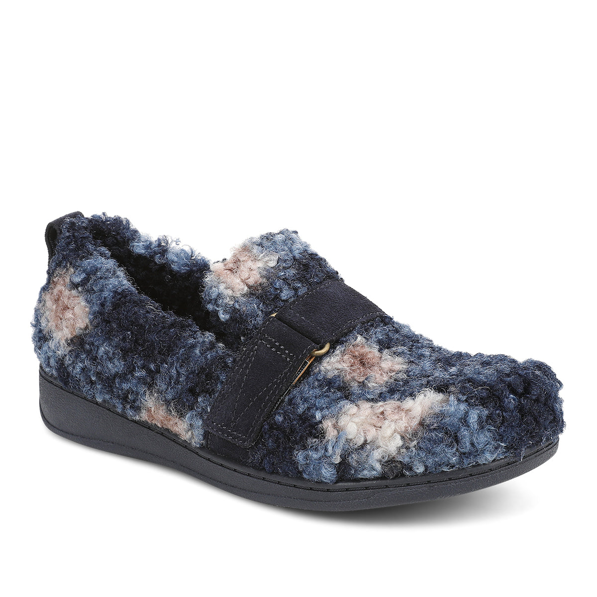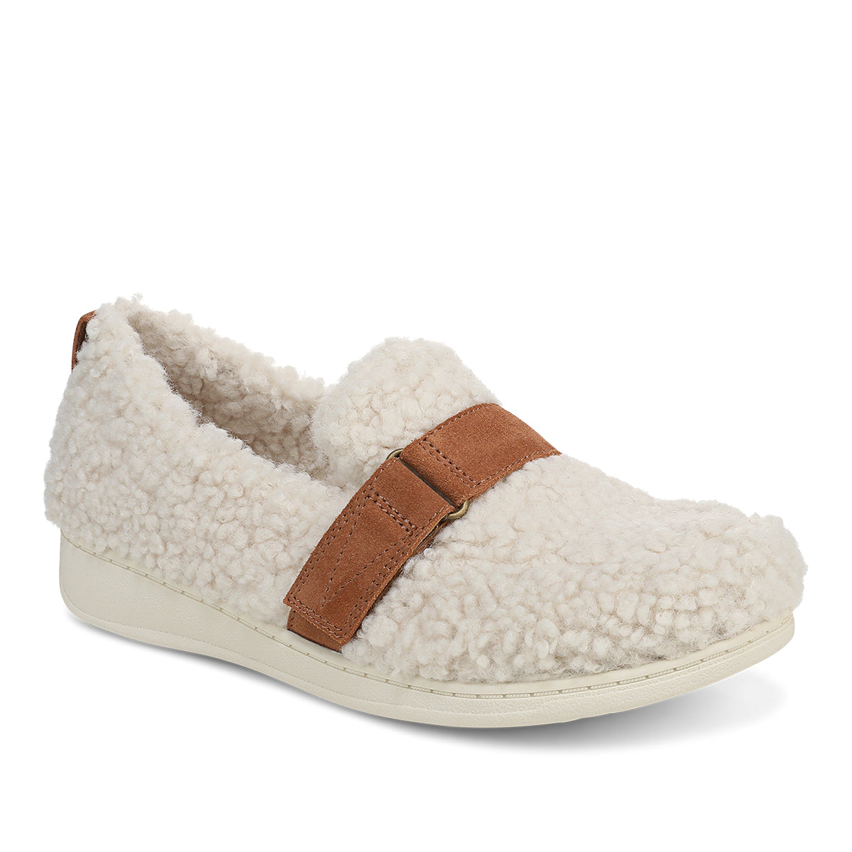 Slip into the warmth of the Imogen closed-back slipper, crafted with soft faux shearling and a smooth microfiber lining. Designed for effortless comfort, it features a hook-and-loop strap with D-ring detail, a lightweight EVA midsole, and a grippy TPR outsole—plus a convenient pull tab for easy wear.