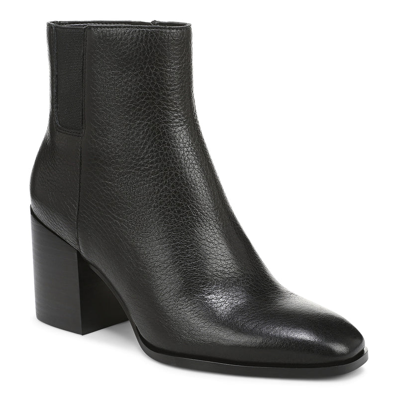 Sleek lines, supportive design. Meet Vynn: the refined ankle boot with a modern square toe, stretch goring, and side zip for easy wear. Available in smooth leather or soft suede and finished with a 3.25” heel and Meta Dome cushioning technology to carry you confidently through the day.